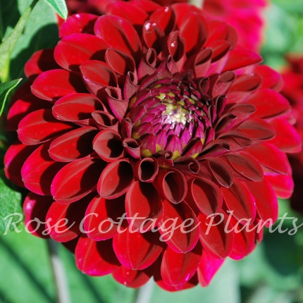 Ball dahlia, with dusky, maroon-red flowers. Raised by one of Holland's leading dahlia breeders, all the 'Fox' series have good, strong stems and are excellent for cutting.