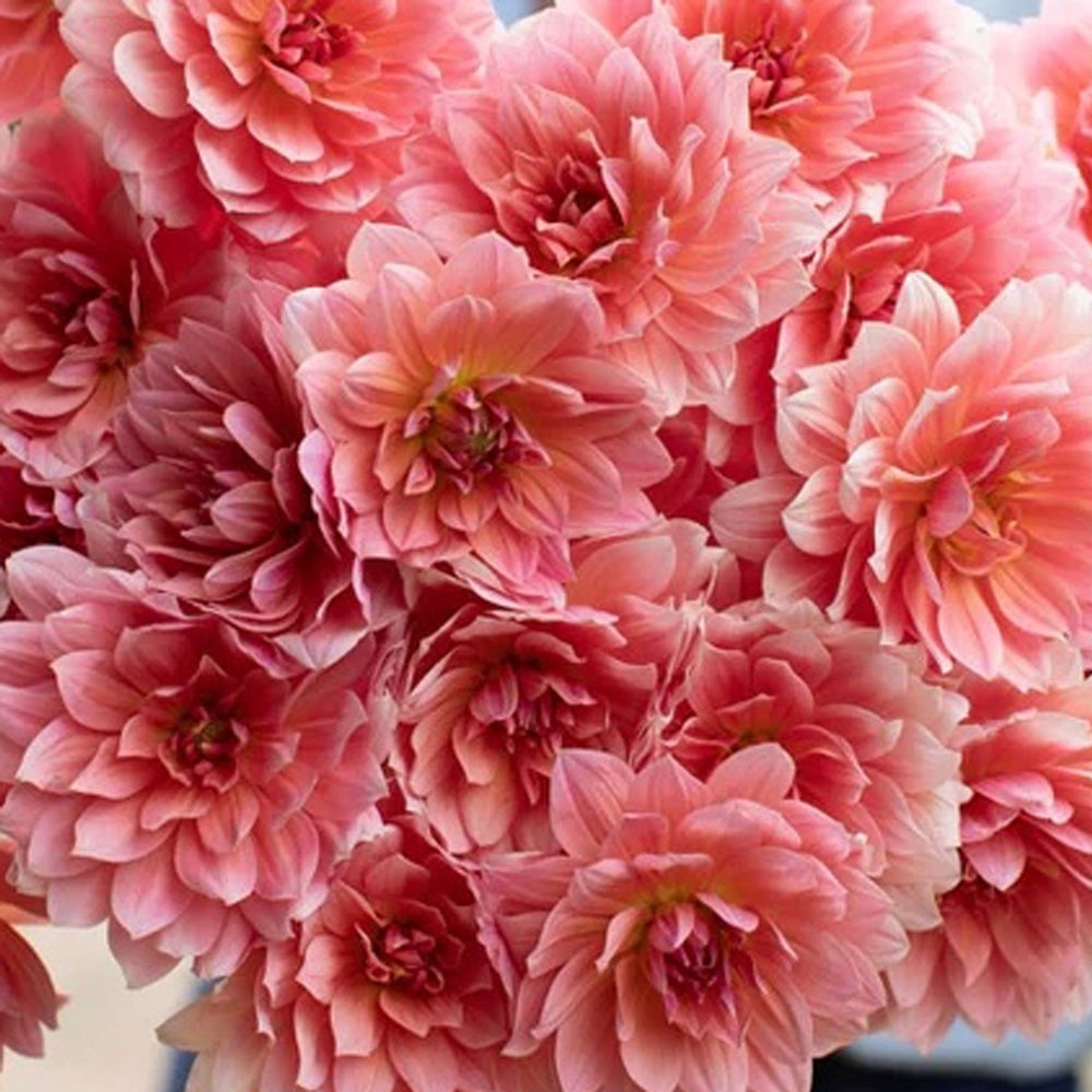 Beautiful waterlily dahlia, with cupped blooms of light coral pink. A lovely garden dahlia which is also perfect for bridal bouquets.