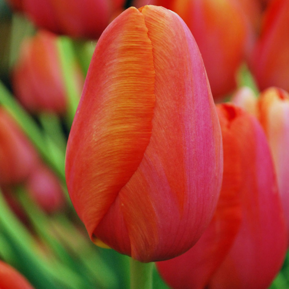 Richly coloured flowers of flame-orange with a hint of deep rose. One of the 'French' tulips, which are tall, beautifully coloured and harmonise well with each other. We grow 'Avignon' with 'Menton' to great effect, especially when combined with 'Fire King' wallflowers.